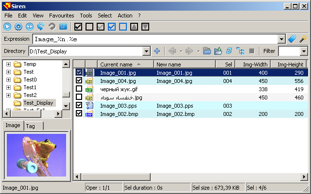 In this case, "%n" corresponds to the selection number and "%e" to the file name extension.